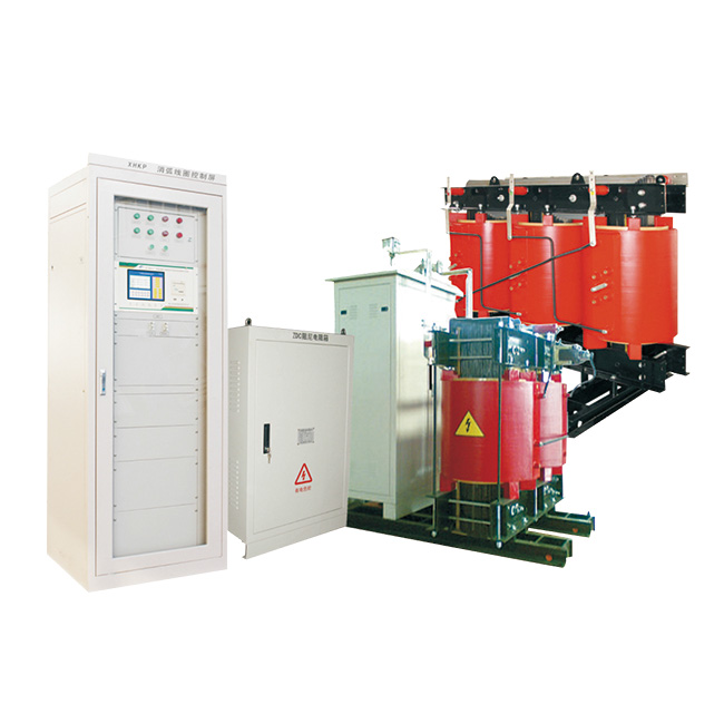 調容式消弧線圈是在消弧線圈裝置中增設次線圈,在二次線圈上并聯 若干組電容器負荷,其結構如下圖所示。N1為主繞組,N2為一二次繞組,在 二次側并聯若干組用真空開關或晶閘管通斷的電容器,用來調節二次側電 容的容抗值。根據阻抗折算原理,調節二次側容抗值,即可以達到改變一 次側電感電流的要求。電容值的大小及組數有多種不同排列組合,以滿足 調節范圍和精度的要求。