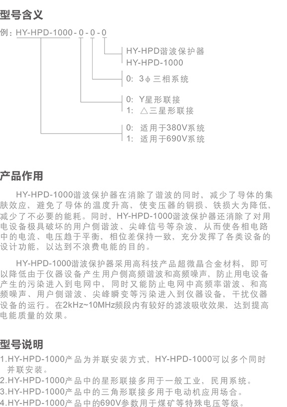 HY-HPD-1000諧波保護器實現在諧波環境下保護各種精密控制設備, 如電腦、PLC、傳感器、無線設備、CT機、DCS等,使漆免受諧波危害。 采用HY-HPD-1000諧波保護器減少了儀器設備的故障率和機器誤操 作,提高了設備的運行效率和使用壽命,全面克服了由于用戶側高次諧 波造成的電能質量惡劣,導致設備損耗,性能失常,造成不必要的損失。 HY-HPD-1000完全符合IEC61000-4-5,IEC60939-1-2等標準。